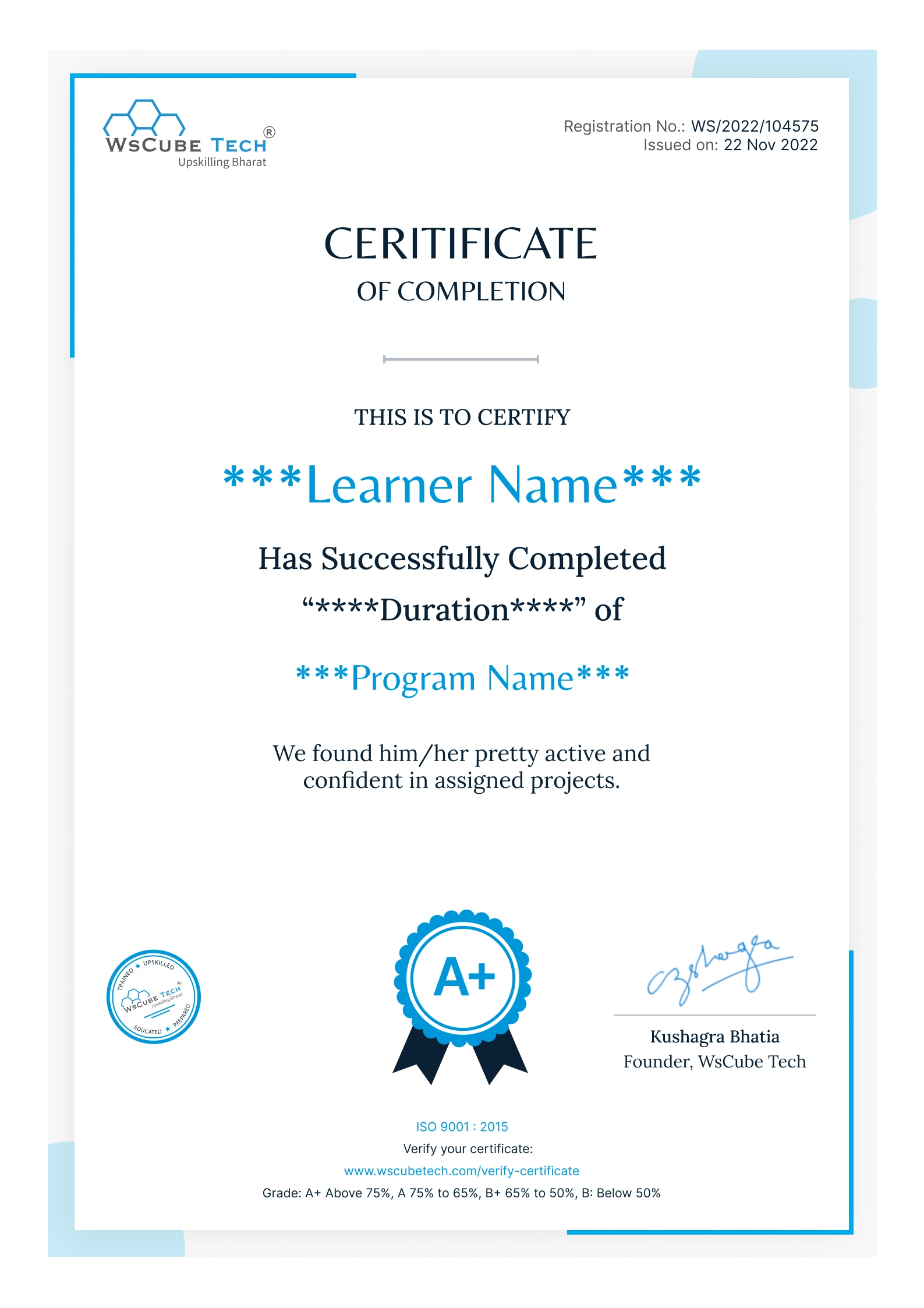 What made this journey even more rewarding was the mentorship, guidance, and constructive feedback from the instructors and the WsCube Tech team. Their support and the collaborative learning environment pushed me to constantly challenge myself and grow.